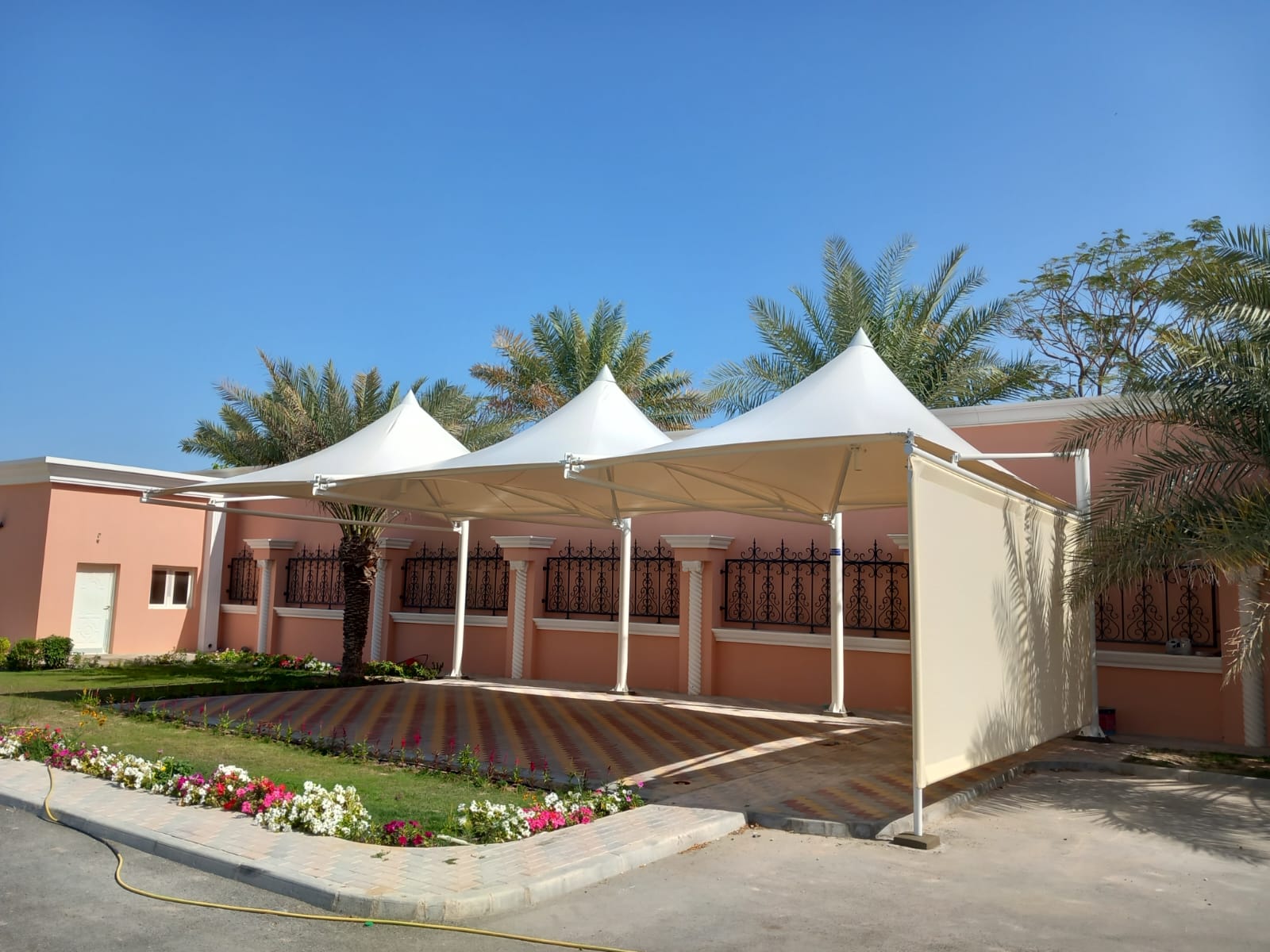 Car Parking Shades, Shades for swimming pool, playground area , garden , school ,water tank and heaters , wall partitions , Motorized pergola system , with all types of Automatic shade & awnings, where we provide you with effective and high-quality protection.